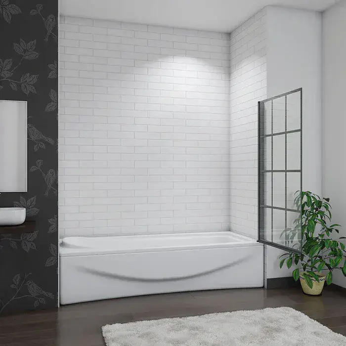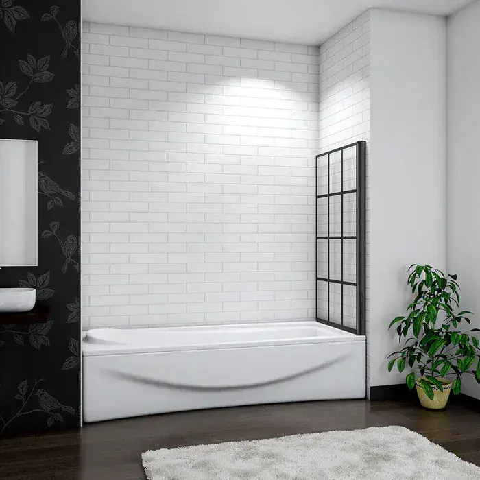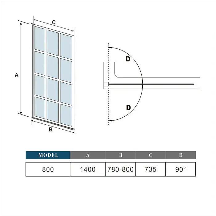 Square Hinged Framed Black Grid Bath Shower Screen 780mm